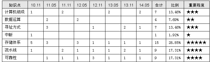 根据表2-1.我们可以得出计算机硬件基础的考点主要有以下几个方面: