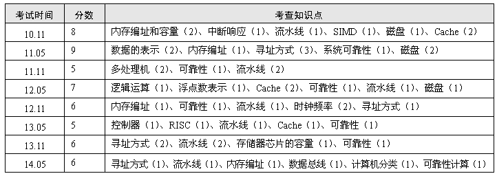 (7)性能评估:主要考查系统可靠性的计算、时钟频率等。